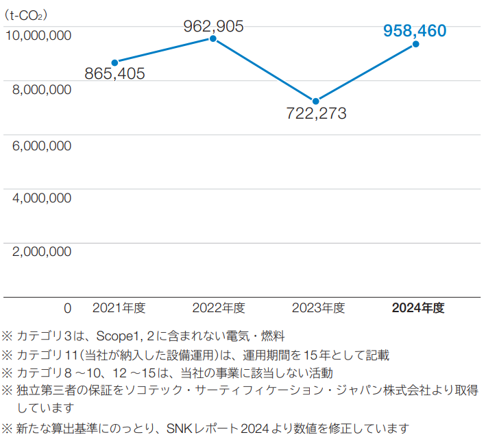 当社は、長期経営方針である10 年ビジョン「SNK Vision 2030」において「持続可能な地球環境の実現と、お客様資産の価値向上に向け、ナレッジとテクノロジーを活用するエンジニア集団を目指す」ことを基本方針に掲げ、空調を中心とする建築設備の省エネルギーや温室効果ガス(GHG)排出の削減に注力しています。スタートアップ企業との協業により、熱源最適制御システム「EnergyQuest®」をはじめとする脱炭素・省エネルギー分野におけるサービスの高度化や事業開発を進め、地球環境への貢献をさらに加速してまいります。