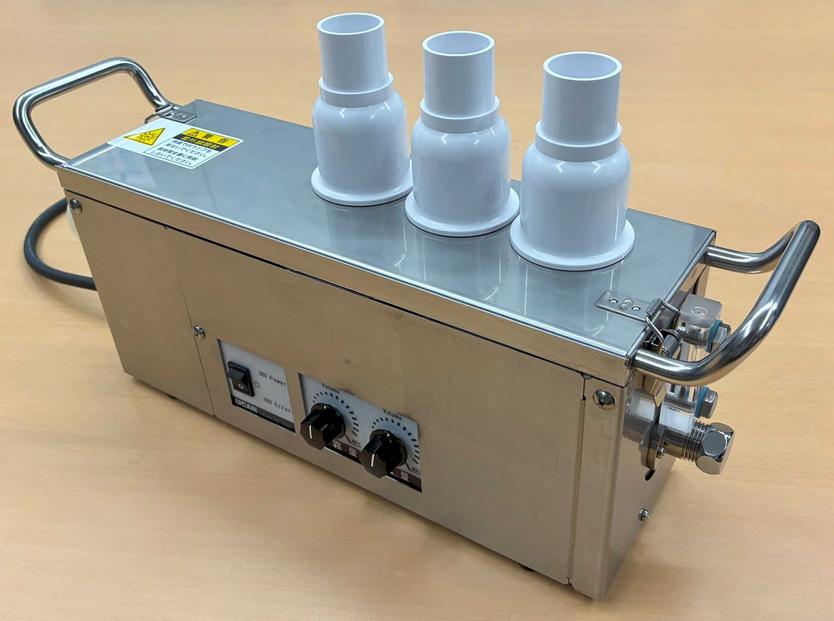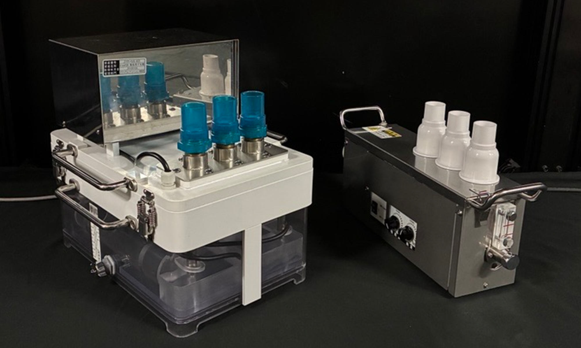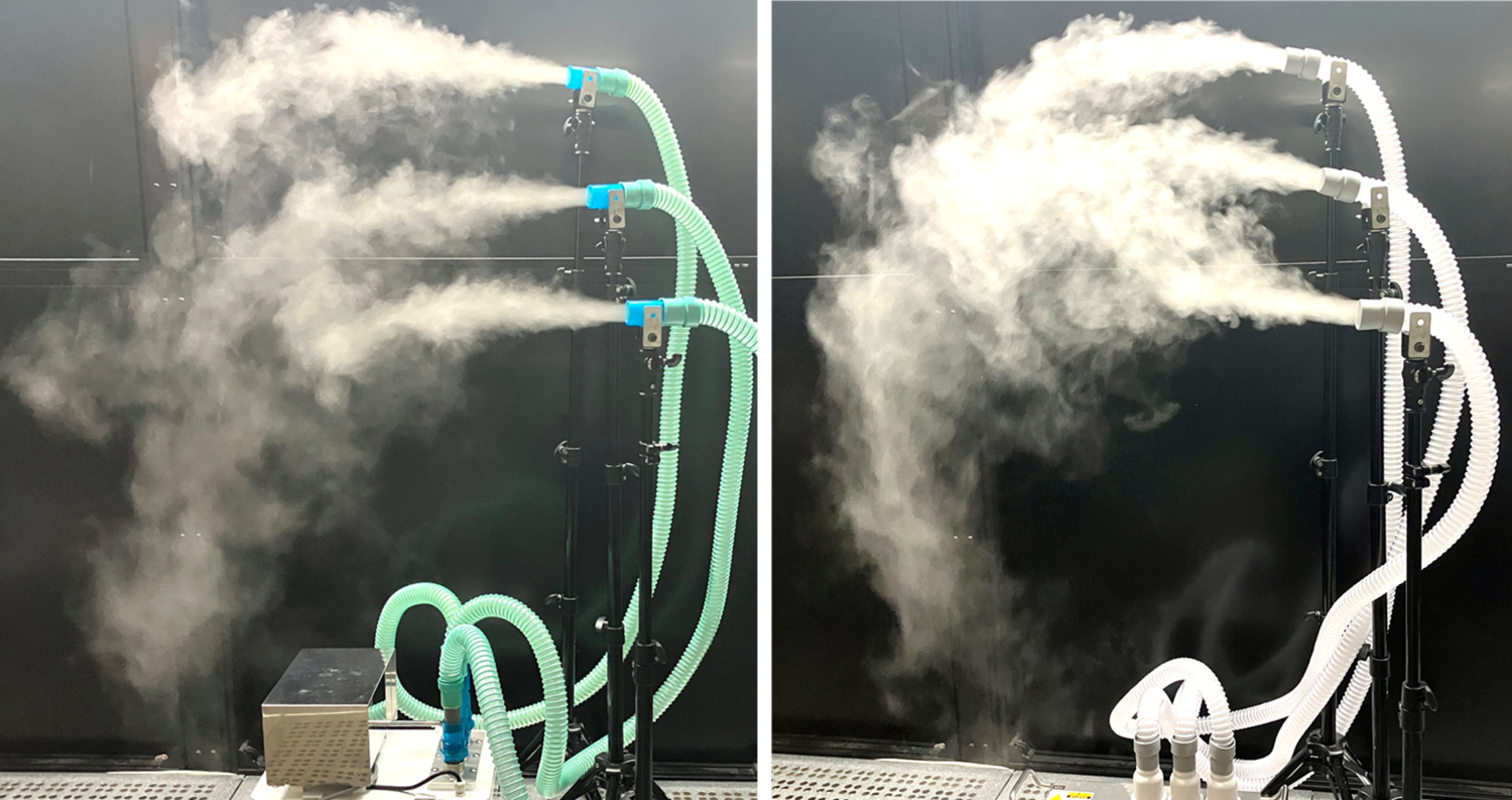 本製品は、オプションタンクを使用することで、多量のトレーサーを長時間噴霧できることに加え、ホース接続により最大3カ所で同時噴霧が可能であり、離れた複数ポイントの気流を同時に把握することができます。この特長により、製薬工場のバリデーションや広範囲にわたる気流検証など、これまで多くの現場で採用されてきました。